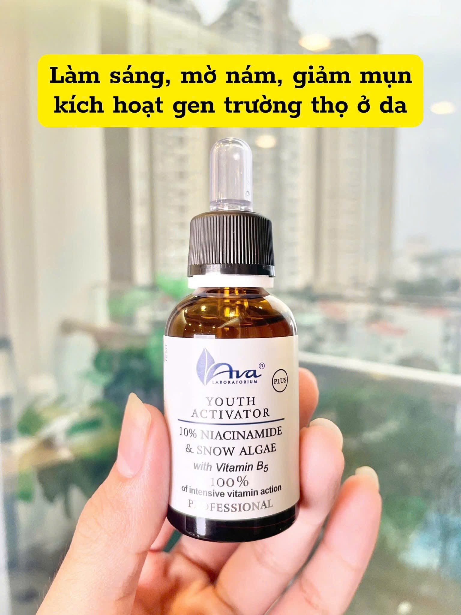 - Serum Niacynamide và B5, chiết xuất tảo tuyết cấp ẩm, làm sáng da, kích thích gen trường thọ trên da