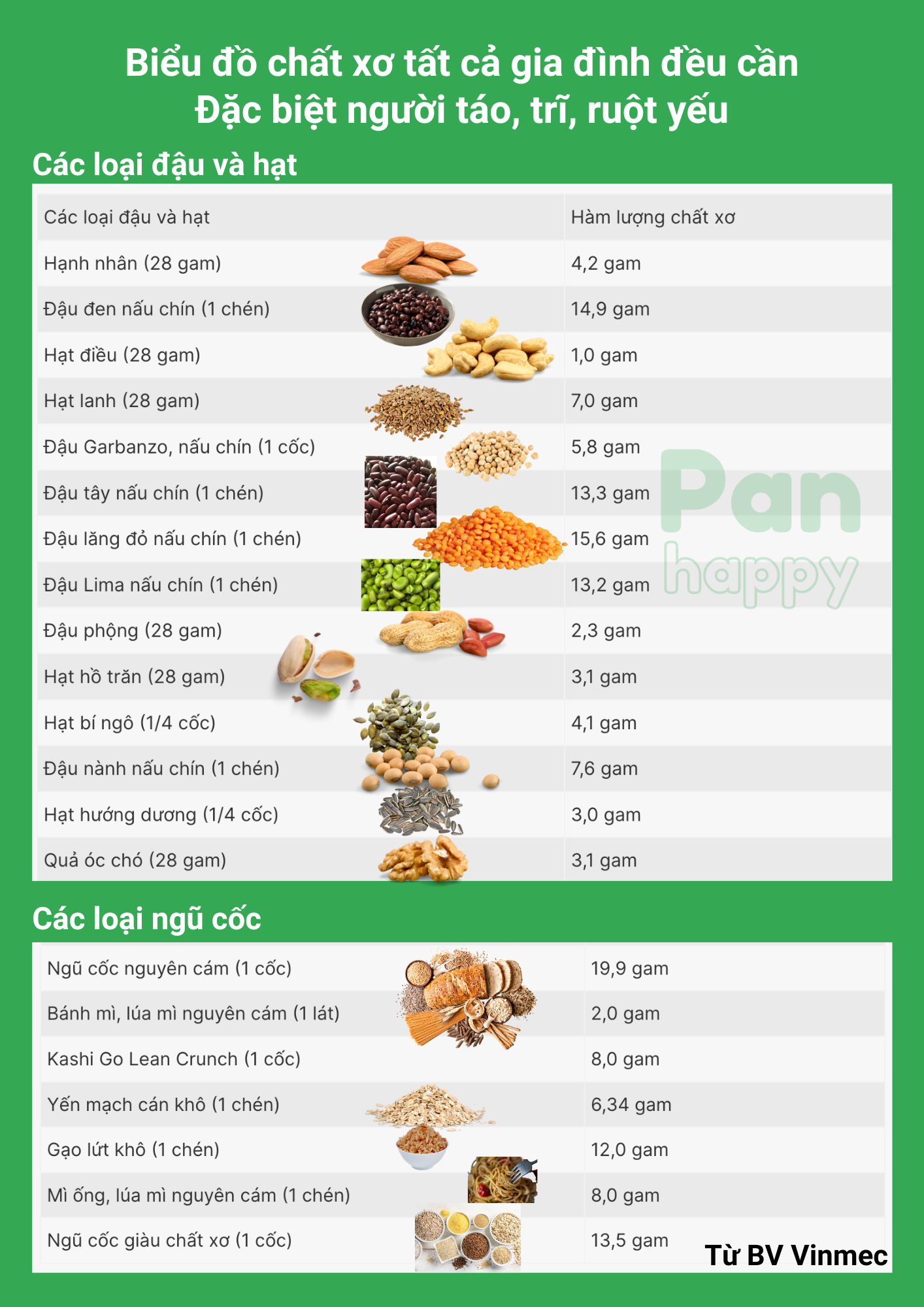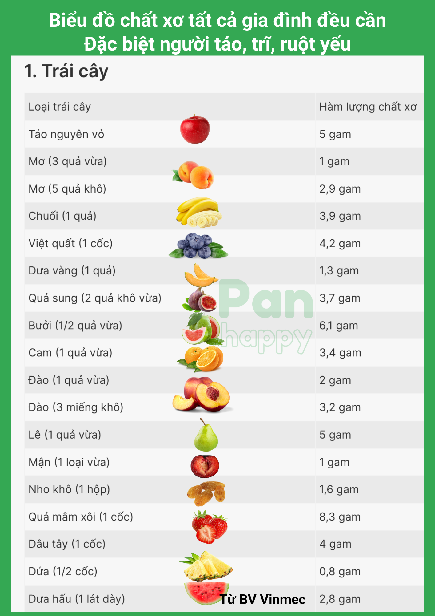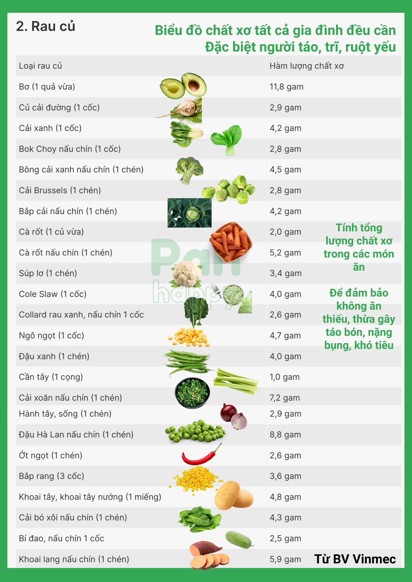 Pan Happy thương gửi Biểu đồ chất xơ để Cô chú, Anh chị có thể dễ dàng kiểm soát lượng chất xơ đi vào cơ thể. Từ đó: