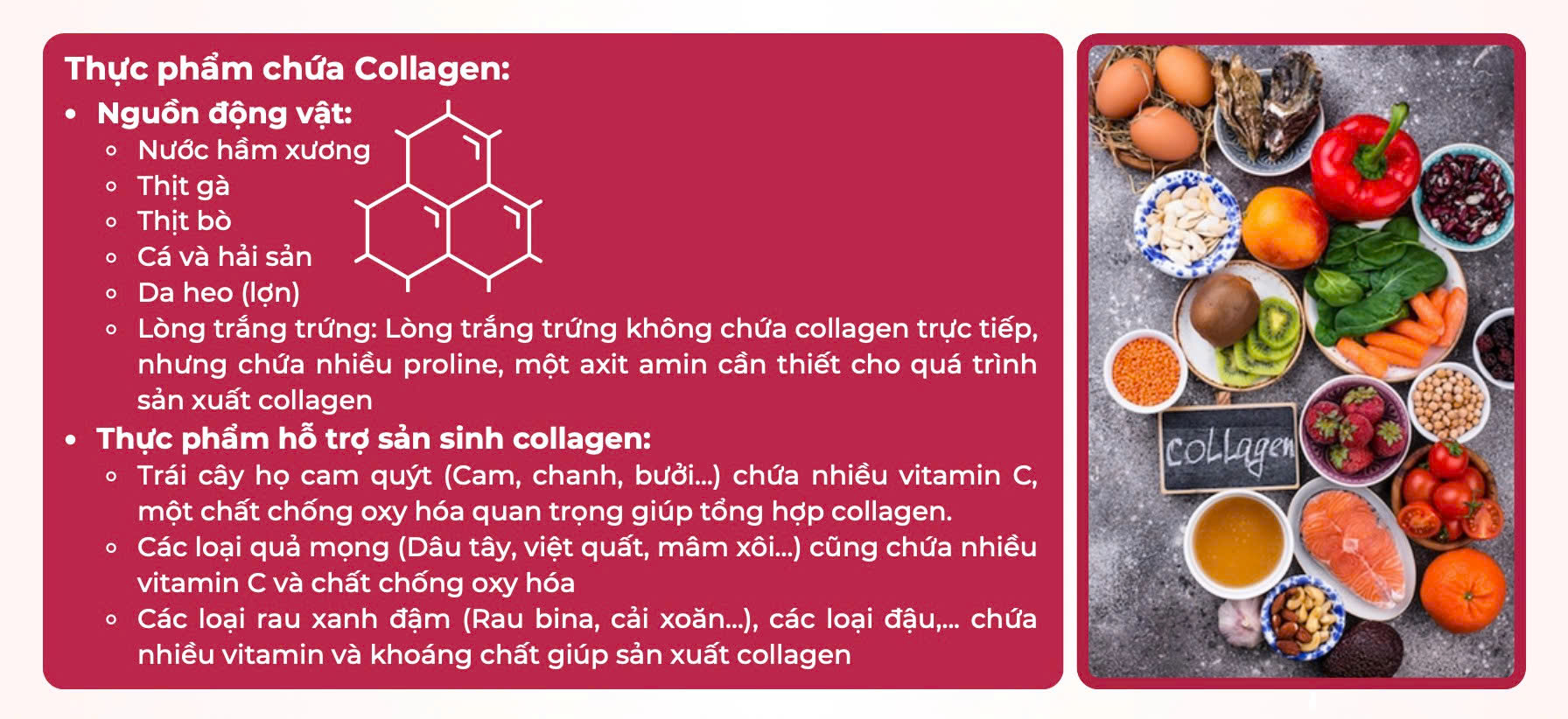 Bổ sung collagen hỗ trợ tăng tính đàn hồi cho da, giúp giảm lão hóa da, hỗ trợ làm đẹp da.
