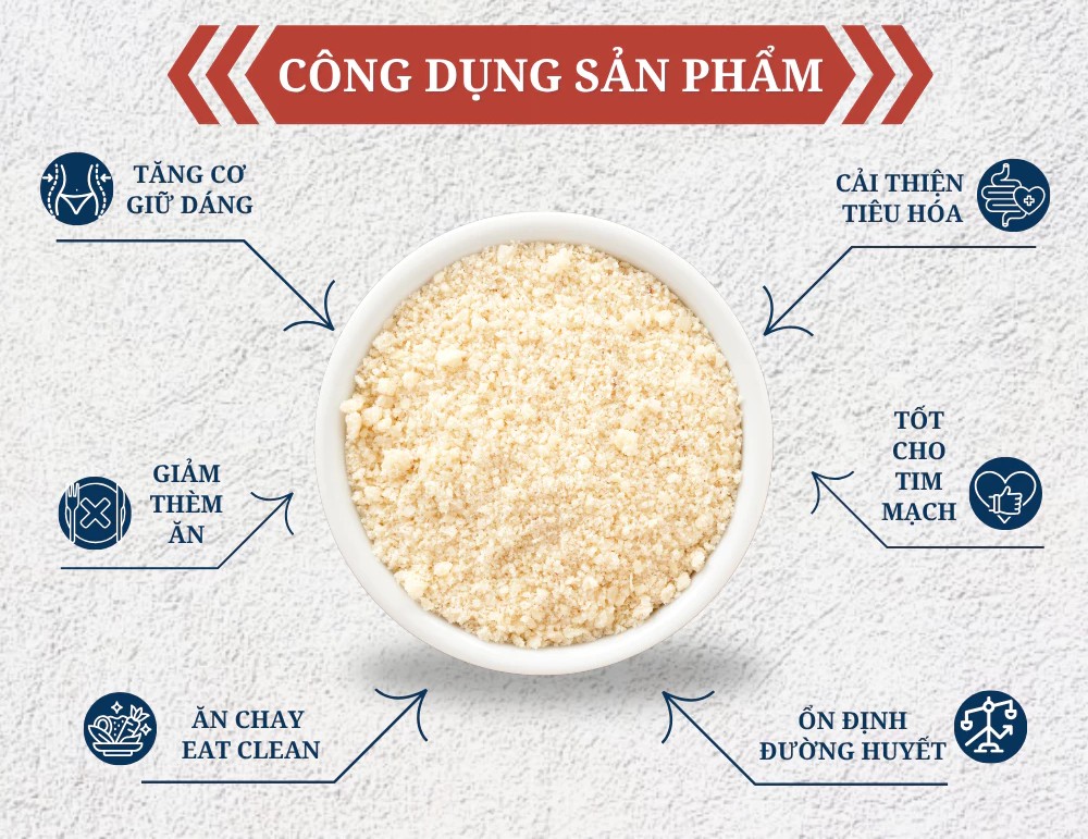 - Hương vị bùi ngậy tự nhiên, dễ dàng biến tấu thành hàng chục món ăn: bánh mì không men, pancake protein, sốt hummus, sữa hạt, hay đơn giản là rắc lên salad.