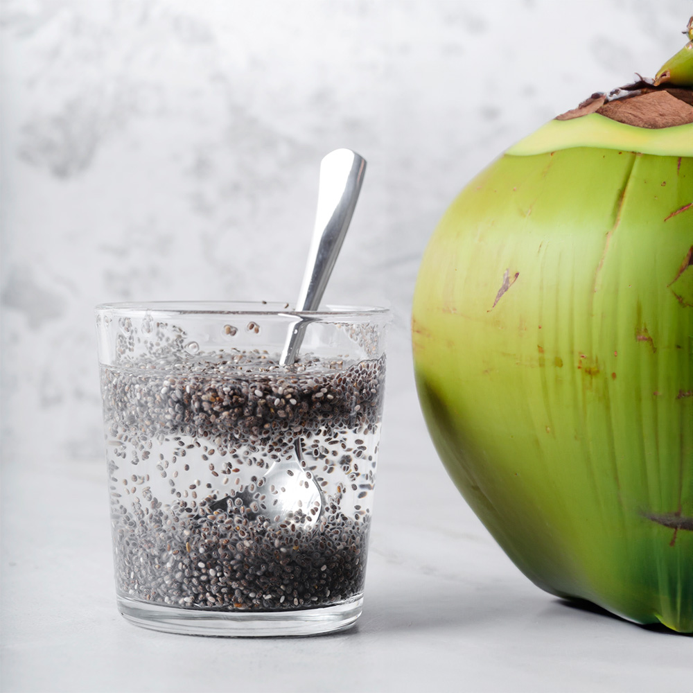 – Cho 1 muỗng hạt chia vào 150ml nước