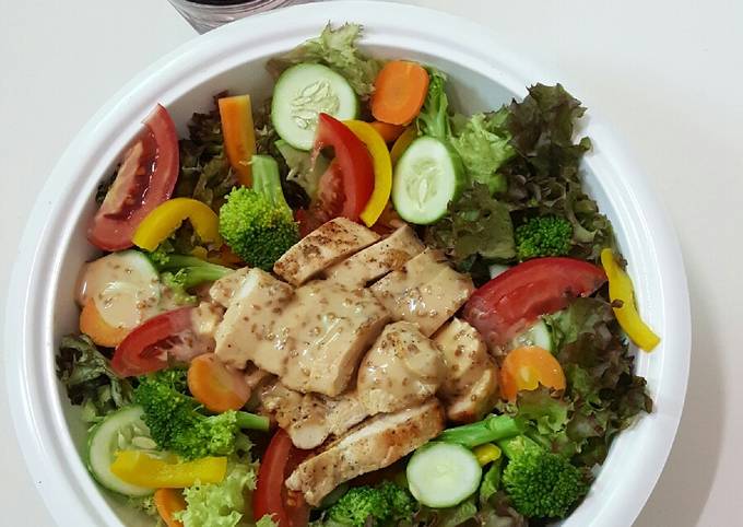 4. Ức gà, rau nướng, xốt mè