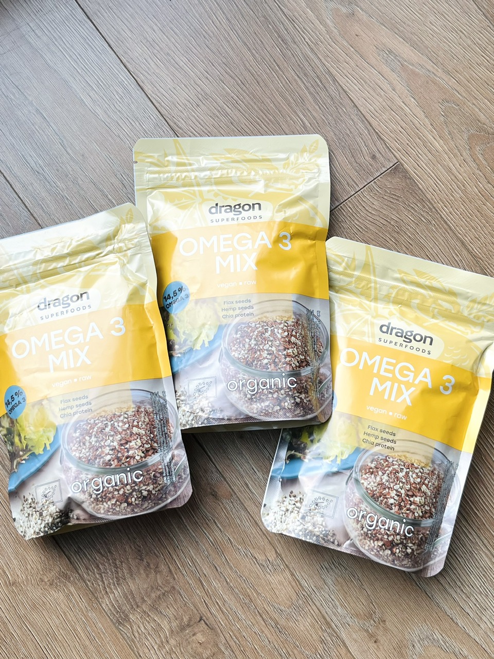 Hỗn hợp Omega 3 Dragon Superfoods là hỗn hợp các loại hạt hữu cơ tự nhiên giàu axit béo Omega 3. Sự kết hợp của hạt chia, hạt lanh và hạt gai dầu đã tách vỏ tạo nên hương vị hạt nhẹ nhàng, dễ chịu. Hỗn hợp Omega 3 Dragon Superfoods thích hợp để thêm vào sinh tố và rắc lên salad.