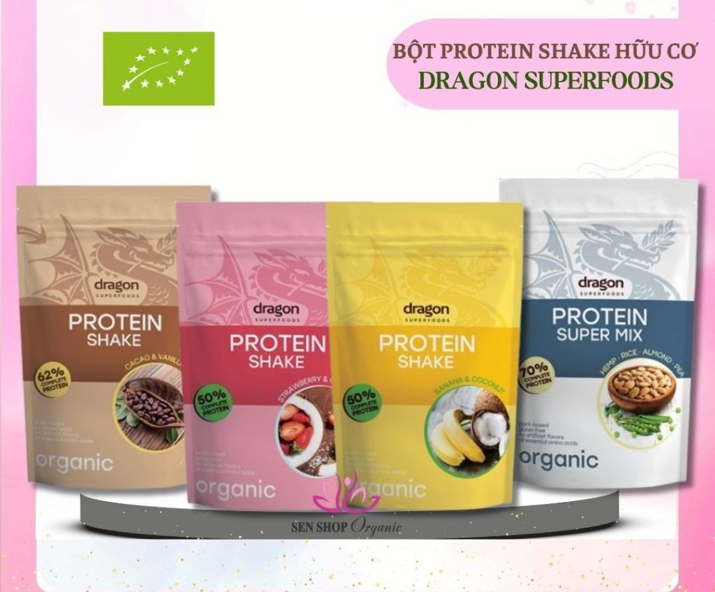 Protein Super Mix 500g – Dragon Superfoods mang đến 4 hương vị đa dạng, phù hợp với nhiều sở thích: Tổng hợp giàu dinh dưỡng từ các loại protein thực vật, Cacao & Vanilla thơm béo hấp dẫn, Dâu Dừa ngọt dịu tự nhiên, và Chuối Dừa thanh mát, dễ uống. Mỗi phiên bản đều giữ nguyên chất lượng hữu cơ, cung cấp nguồn protein hoàn chỉnh từ thực vật, hỗ trợ sức khỏe và chế độ ăn lành mạnh.