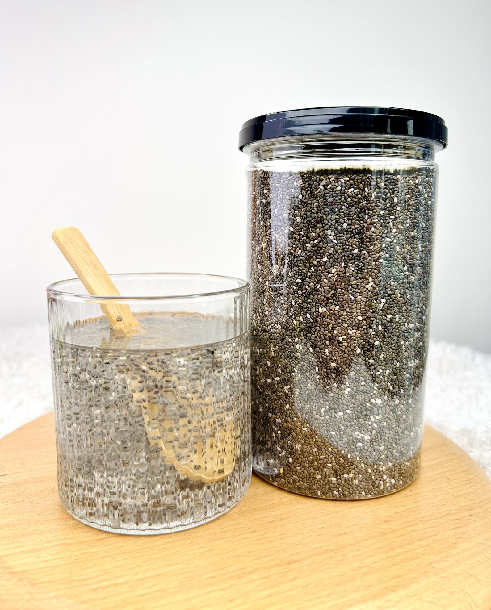 - Ngâm hạt chia trong nước (ấm hoặc lạnh) 10-15 phút để hạt nở, khuấy đều liên tục càng tốt để hạt không bị vón cục, sau đó dùng trực tiếp.