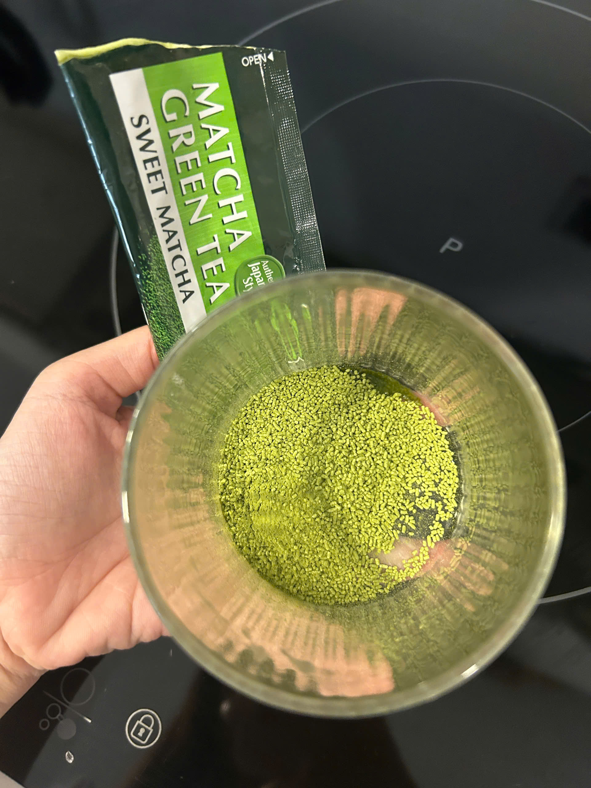 - MATCHA SỮA CHUA: Cho 120 g sữa chua nguyên chất vào trong một cái tô sau đó Rắc 1 gói bột trà xanh matcha lên trên bề mặt sữa chua.