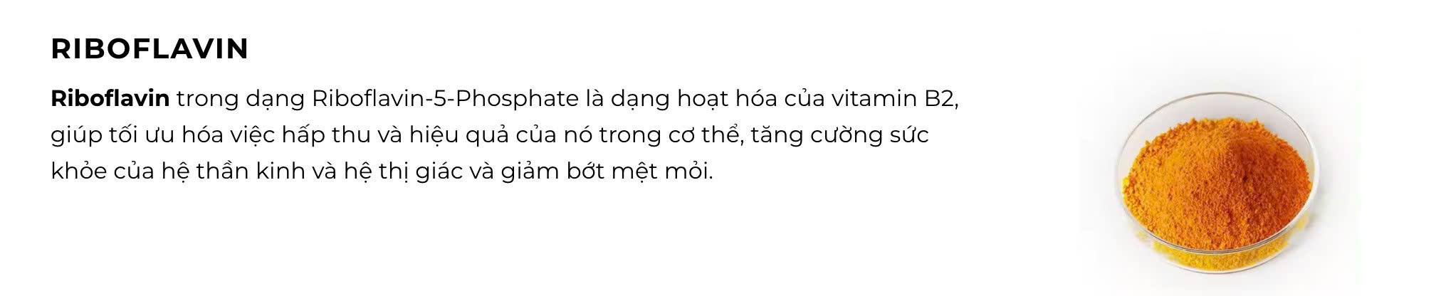 Riboflavin (dạng Riboflavin-5-Phosphate) 1mg; Vitamin B12 (dạng Methylcobalamin) 250mcg.