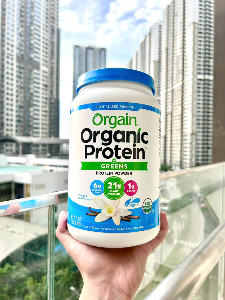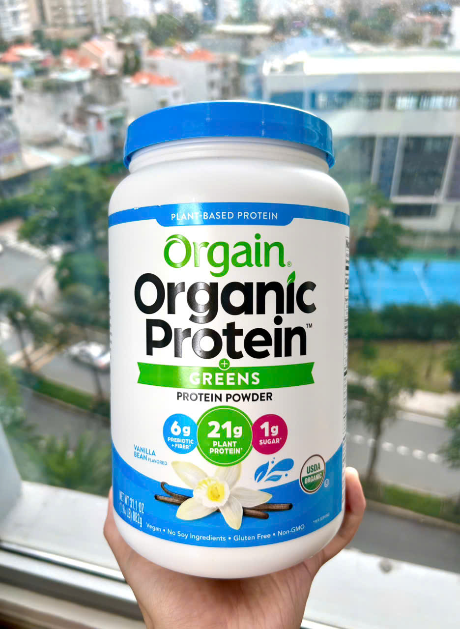 Thành phần: hỗn hợp đạm thực vật hữu cơ Orgain (đạm đậu hà lan*, đạm gạo lứt*, đạm hạt chia*), hương tự nhiên*, hỗn hợp kem hữu cơ Orgain (keo*, dầu hướng dương hàm lượng cao acid olelic*, dextrin gạo*, lecithin hướng dương*, dịch chiết hương thảo*), erythritol*, hỗn hợp xanh hữu cơ Orgain (cải bó xôi*, bông cải xanh*, cải xoăn kale*), hương tự nhiên, muối biển, keo*, gôm guar*, dịch chiết cỏ ngọt*, gôm xanthan.*: từ nông nghiệp hữu cơ.