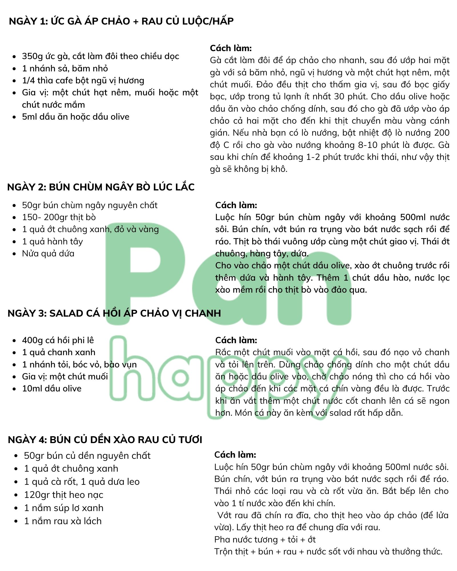 [Pan Happy] [Nội bộ] Thực đơn Giảm mỡ 1000 calo