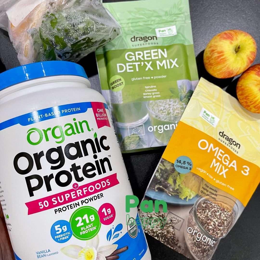 - Protein thực vật hữu cơ, ưu tiên các dòng có nhiều thành phần superfoods – rau củ quả, thảo mộc hữu cơ.