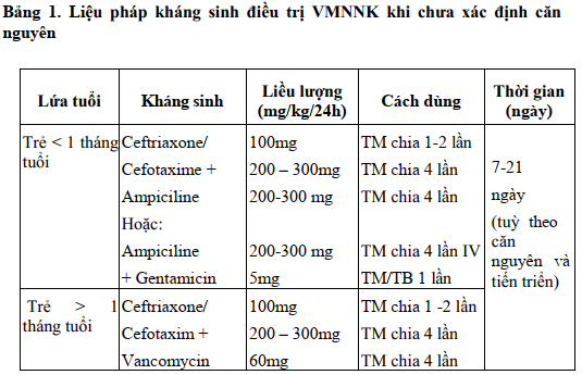 Khi chưa xác định được chính xác căn nguyên vi khuẩn, liệu pháp kháng sinh được chỉ định theo lứa tuổi bệnh nhân, cụ thể như sau: