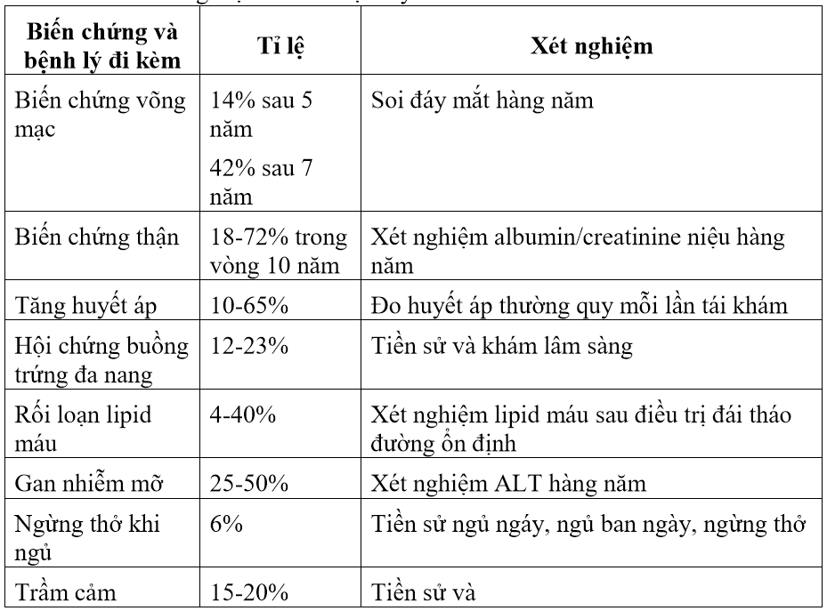 + Cần khám sàng lọc phát hiện biến chứng bàn chân tại thời điểm chẩn đoán và định kỳ sau đó.
