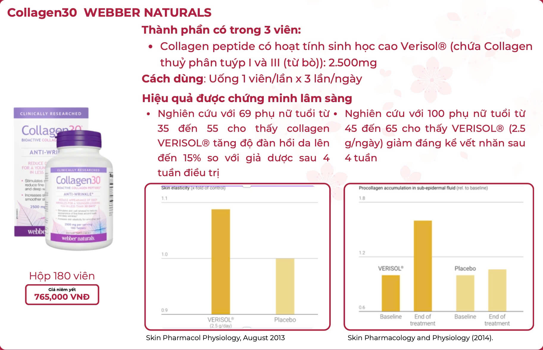 - Thành phần collagen Verisol® độc quyền đã có 6 thử nghiệm lâm sàng bài bản, kỹ lưỡng